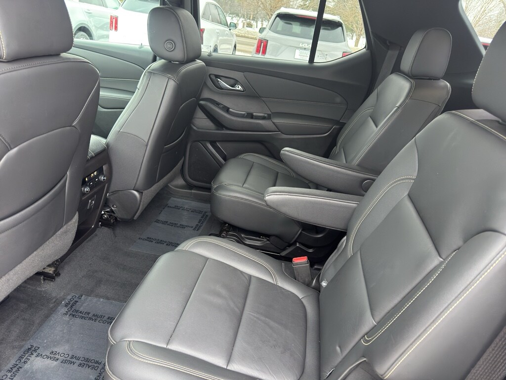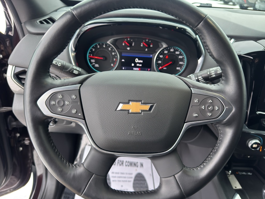 The leather seats in the Chevrolet Traverse are a must for buyers looking for comfort, durability, and style. This Chevrolet Traverse features a hands-free Bluetooth phone system. See what's behind you with the back up camera on this 1/2 ton suv. Start this 1/2 ton suv from inside with remote start. This 1/2 ton suv keeps you comfortable with Auto Climate. Apple CarPlay: Seamless smartphone integration for the Chevrolet Traverse - stay connected and entertained on the go! This 1/2 ton suv is pure luxury with a heated steering wheel. The Chevrolet Traverse offers Android Auto for seamless smartphone integration. The vehicle stays safely in its lane with Lane Keep Assist. The vehicle is outfitted with an OnStar communication system. Load groceries and much more with ease into the Chevrolet Traverse thanks to the power liftgate. Set the temperature exactly where you are most comfortable in this 2022 Chevrolet Traverse . The fan speed and temperature will automatically adjust to maintain your preferred zone climate.