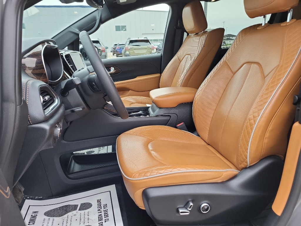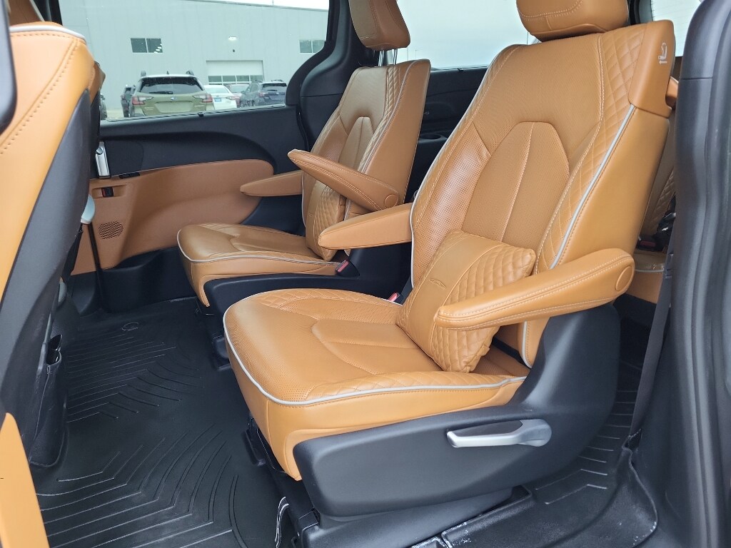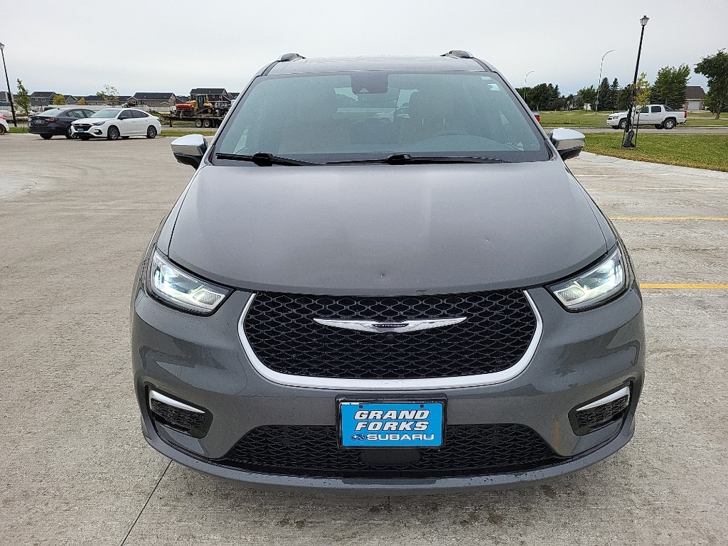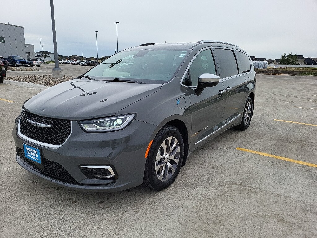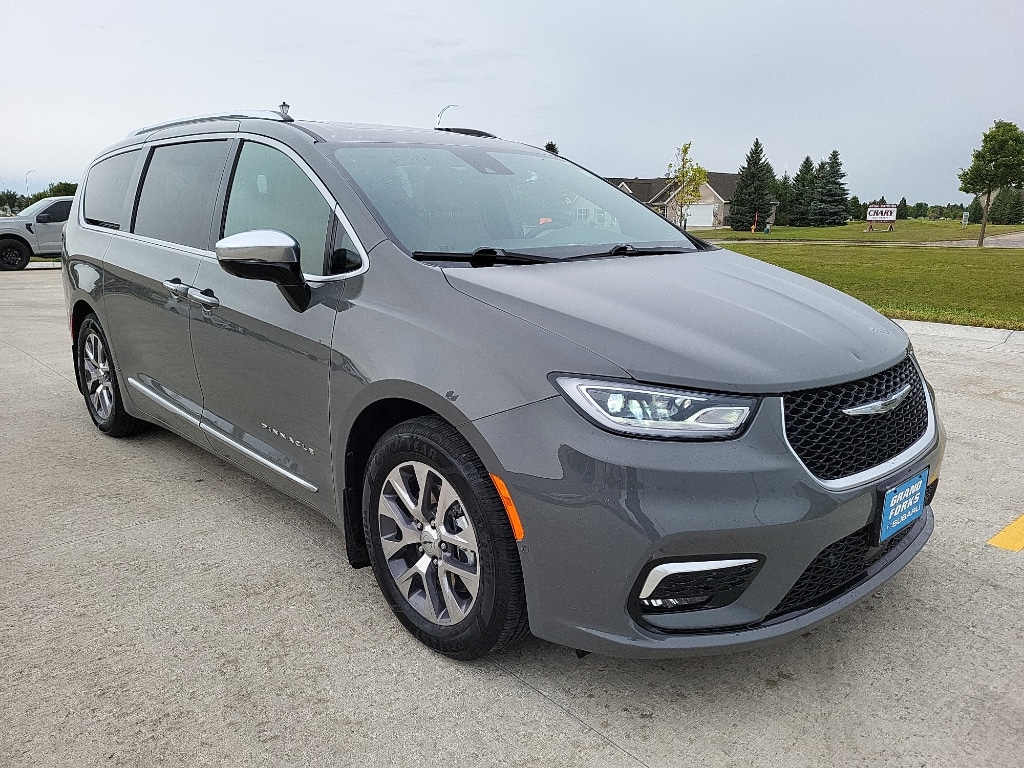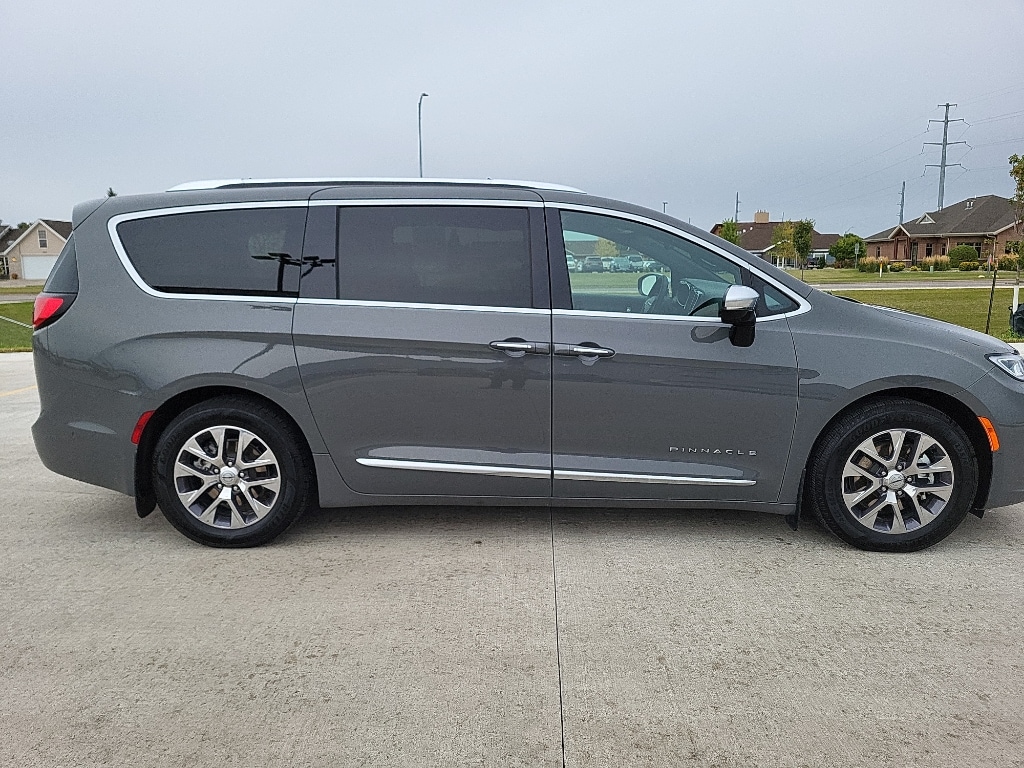 The installed navigation system will keep you on the right path. Start this Chrysler Pacifica from inside with remote start. The leather seats in this model are a must for buyers looking for comfort, durability, and style. The Chrysler Pacifica's Forward Collision Warning feature alerts drivers to potential front-end collisions. Bluetooth technology is built into this model, keeping your hands on the steering wheel and your focus on the road. See what's behind you with the back up camera on it. Apple CarPlay: Seamless smartphone integration for the vehicle - stay connected and entertained on the go! This mini van is pure luxury with a heated steering wheel. It's Lane Departure Warning keeps you safe by alerting you when you drift from your lane. It has auto-adjust speed for safe following. This mini van comes equipped with Android Auto for seamless smartphone integration on the road. It projects refinement with a racy metallic gray exterior.