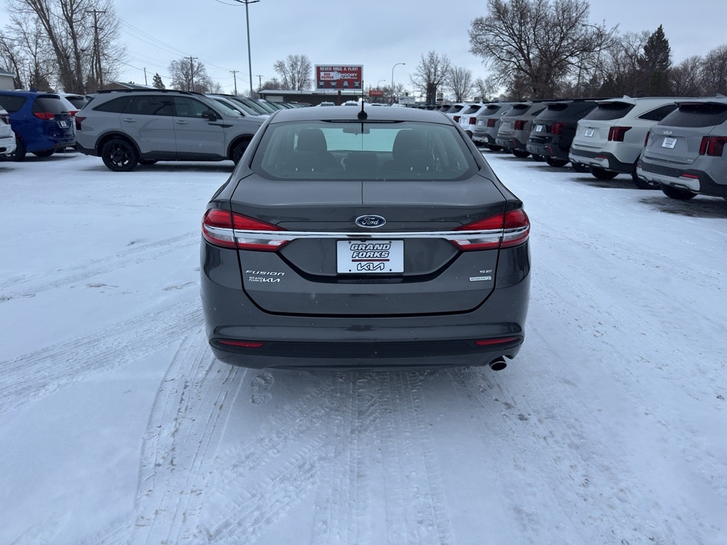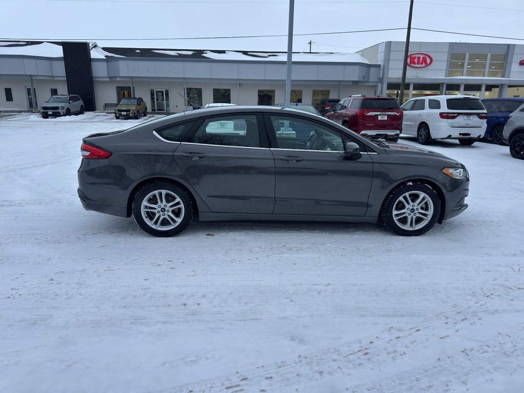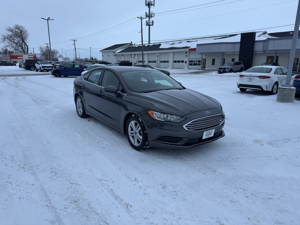 2018 Ford Fusion SE â" reliable midsize sedan with smooth front-wheel drive and an efficient 1.5L 4-cylinder gasoline engine, located in Grand Forks, ND. This well-maintained Ford Fusion SE pairs strong fuel economy with confident handling, making it an ideal daily commuter or family car. The automatic climate control keeps the cabin comfortable in all seasons, while the back-up camera and rear parking sensors add visibility and confidence when maneuvering in tight spaces. Hands-free Bluetooth lets you stay connected safely on the road for calls and audio streaming.