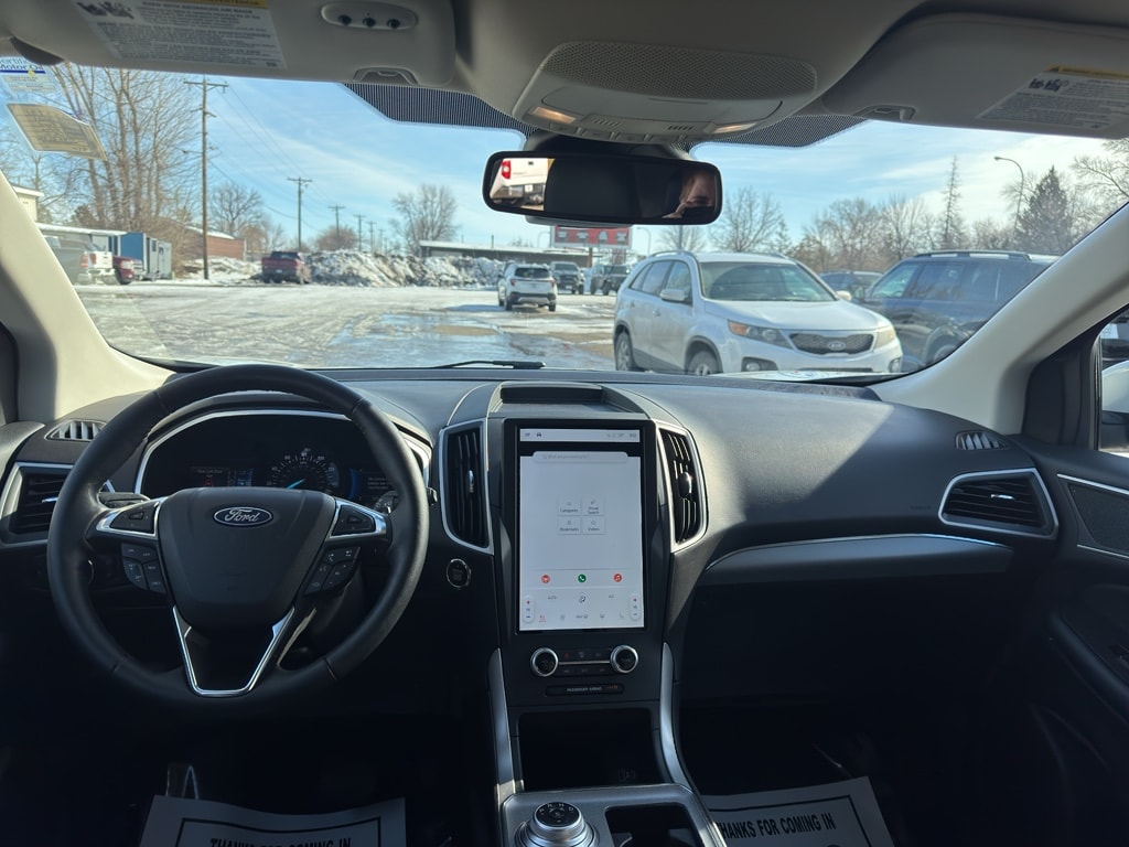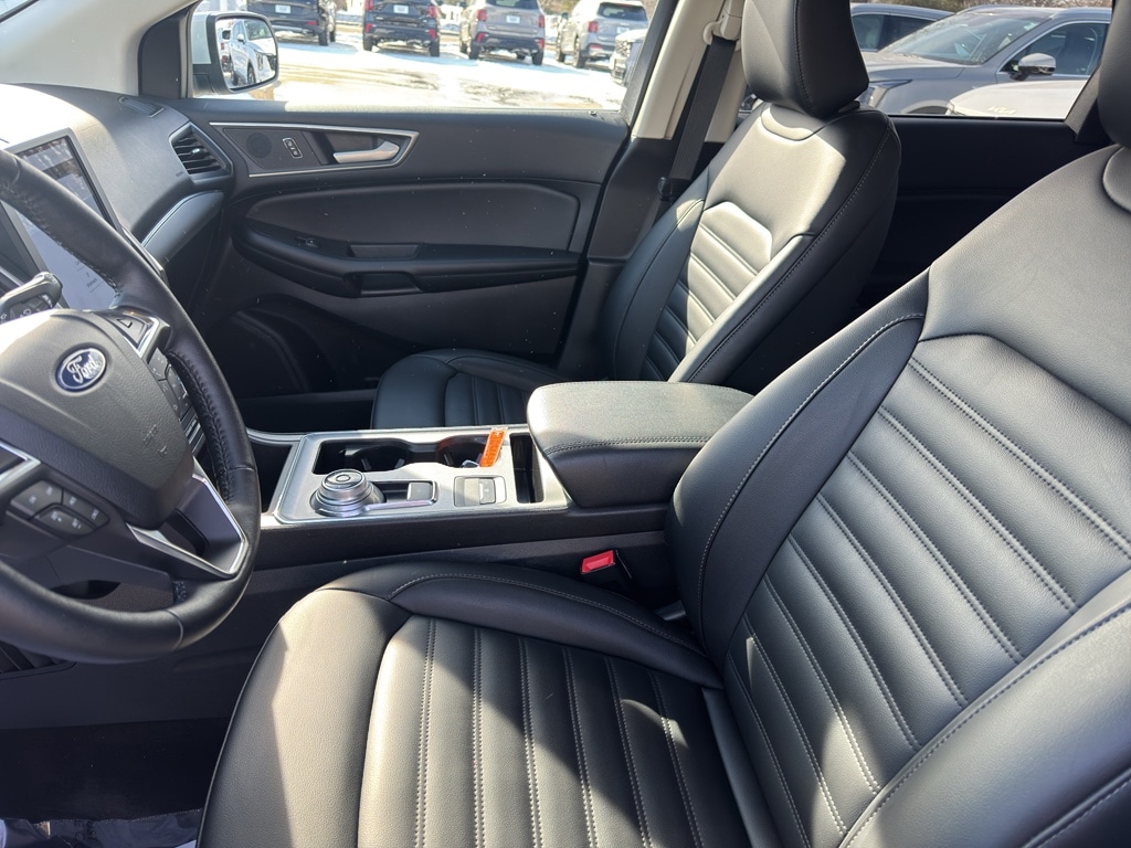See what's behind you with the back up camera on the vehicle. The rear parking assist technology on the vehicle will put you at ease when reversing. The system alerts you as you get closer to an obstruction. This 2021 Ford Edge offers Apple CarPlay for seamless connectivity. The vehicle features a hands-free Bluetooth phone system. Start this mid-size suv from inside with remote start. This mid-size suv offers Android Auto for seamless smartphone integration. This model's Cross-Traffic Alert: Safeguarding you from unexpected traffic when reversing. The vehicle is pure luxury with a heated steering wheel. This unit keeps you comfortable with Auto Climate. The leather seats in this vehicle are a must for buyers looking for comfort, durability, and style. Maintaining a stable interior temperature in this Ford Edge is easy with the climate control system. This 2021 Ford Edge has a 4 Cyl, 2.0L high output engine. This Ford Edge is equipped with all wheel drive.
