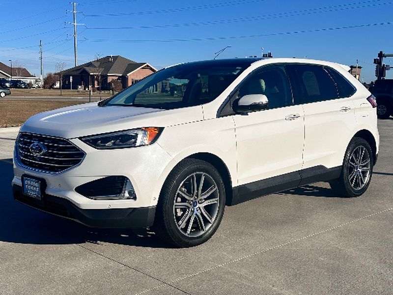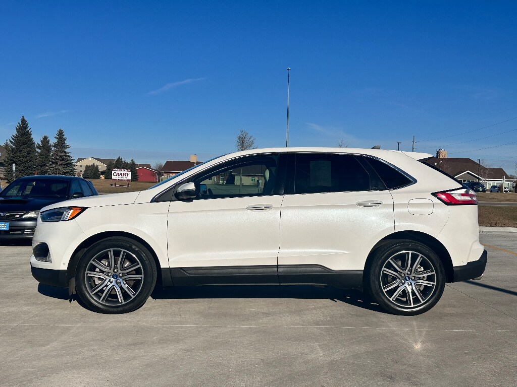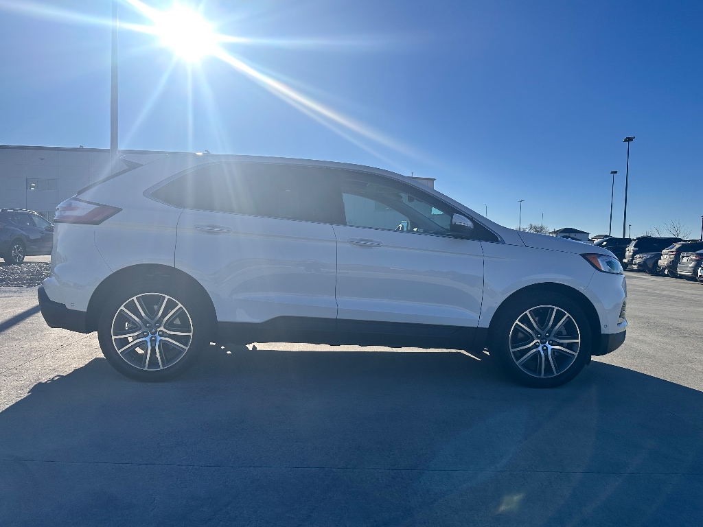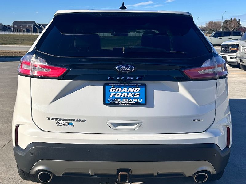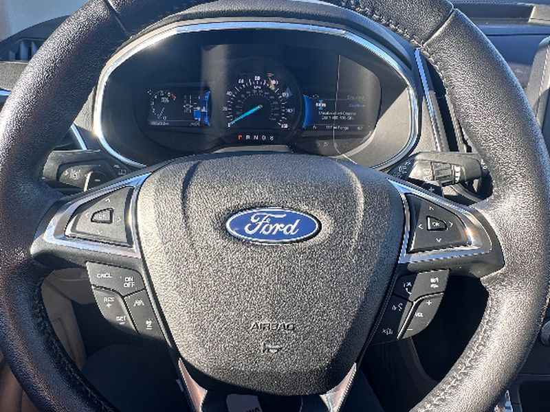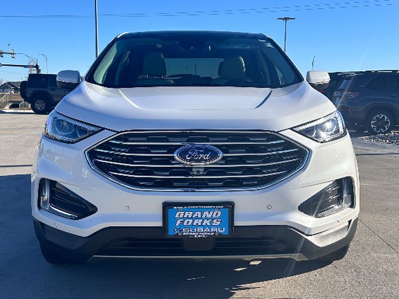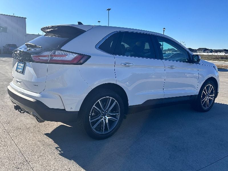 The vehicle offers Android Auto for seamless smartphone integration. The leather seats in the Ford Edge are a must for buyers looking for comfort, durability, and style. See what's behind you with the back up camera on this Ford Edge. Start the vehicle from inside with remote start. This Ford Edge features a hands-free Bluetooth phone system. This unit is pure luxury with a heated steering wheel. The vehicle warns of approaching vehicles with Cross-Traffic Alert. You'll never again be lost in a crowded city or a country region with the navigation system on this vehicle. The Ford Edge offers Apple CarPlay for seamless connectivity. The Ford Edge has auto-adjust speed for safe following. This model is equipped with all wheel drive. Load groceries and much more with ease into it thanks to the power liftgate. The Ford Edge shines with clean polished lines coated with an elegant white finish.