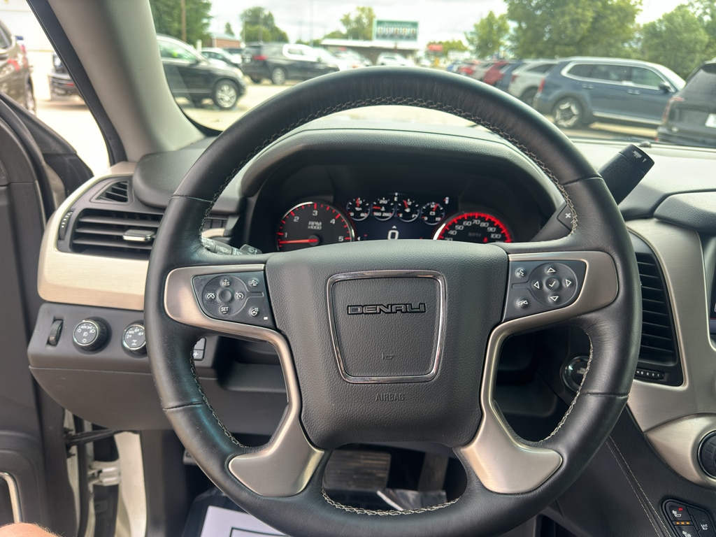 Start this GMC Yukon XL from inside with remote start. The leather seats in the vehicle are a must for buyers looking for comfort, durability, and style. The vehicle's Lane Departure Warning helps keep you in your lane. This GMC Yukon XL warns of approaching vehicles with Cross-Traffic Alert. The vehicle is equipped with the latest generation of XM/Sirius Radio. Keep your hands warm all winter with a heated steering wheel in  the GMC Yukon XL . Bluetooth technology is built into this GMC Yukon XL, keeping your hands on the steering wheel and your focus on the road. This GMC Yukon XL features a high end BOSE stereo system. See what's behind you with the back up camera on this GMC Yukon XL. The installed navigation system will keep you on the right path. Quickly unlock this model with keyless entry. This unit has four wheel drive capabilities. This vehicle has adjustable pedals that are luxurious and safety conscious.