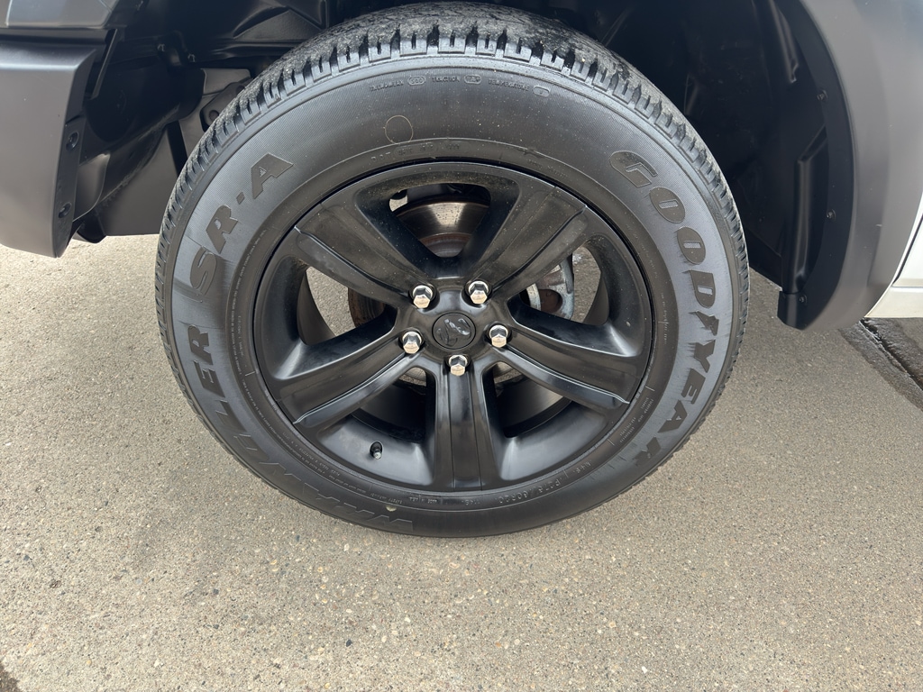 Quick Order Package 29F Warlock: Black Door Handles; Black Powder Coated Rear Bumper; Black RAM Head Tailgate Badge; 4x4 Flat Black Badge; Semi-Gloss Black Hub; Bi-Function Halogen Projector Headlamps; Raised Ride Height; P275/60R20 BSW AS Tires; 20 X 9 Semi-Gloss Black Aluminum Wheels; Rear Extra Heavy Duty Shock Absorbers; Sport Tail Lamps; Black Exterior Truck Badging; Black Powder Coated Front Bumper; Warlock; Black Grille with RAM Lettering; Black Headlamp Filler Panel; Front Wheel Well Liners; Warlock Interior Accents; ParkSense Rear Park Assist System; Black Wheel Flares. Full Size Spare Tire. 3.55 Rear Axle Ratio. **Equipment listed is based on original vehicle build and subject to change. Please confirm the accuracy of the included equipment by calling the dealer prior to purchase.**